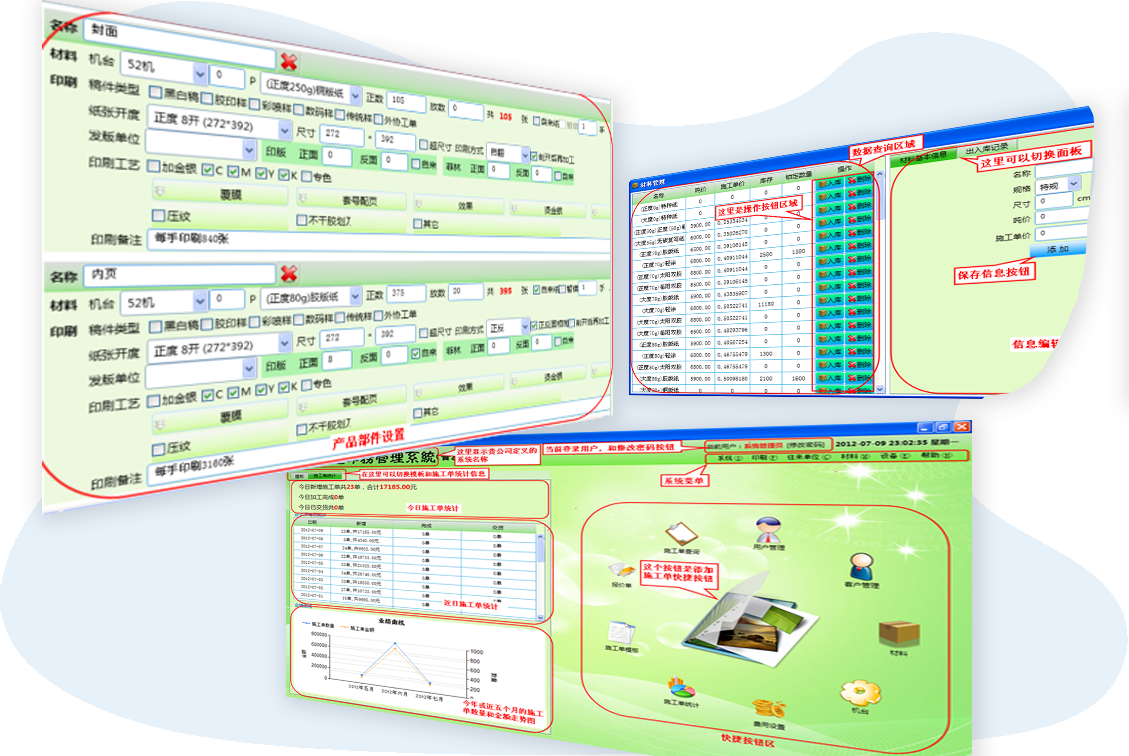 - 可實現印刷流程無紙化管理,包括財務、機臺、銷售多端功能,數據自動流轉。